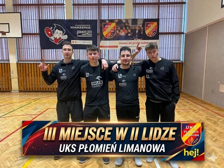 W ostatnim meczu sezonu w II lidze mężczyzn przy stole nie było miejsca na oddech. UKS Płomień Limanowa domknął rozgrywki zwycięstwem 6:4 nad TG Sokół Dynów MATS Rzeszów II i dopisał do dorobku wynik, który ważył więcej niż zwykłe dwa punkty. Trzecie miejsce nie spadło z nieba. Zespół z Limanowej przez całe rozgrywki trzymał się wysoko, a na finiszu okazał się najlepszy w powiecie limanowskim.